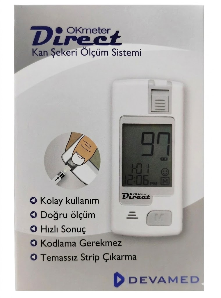 Direct Okmeter, diyabet hastalarının kan glukoz seviyelerini hızlı, doğru ve zahmetsiz bir şekilde izleyebilmeleri için yüksek teknoloji ile donatılmış kullanıcı dostu bir ölçüm cihazıdır.