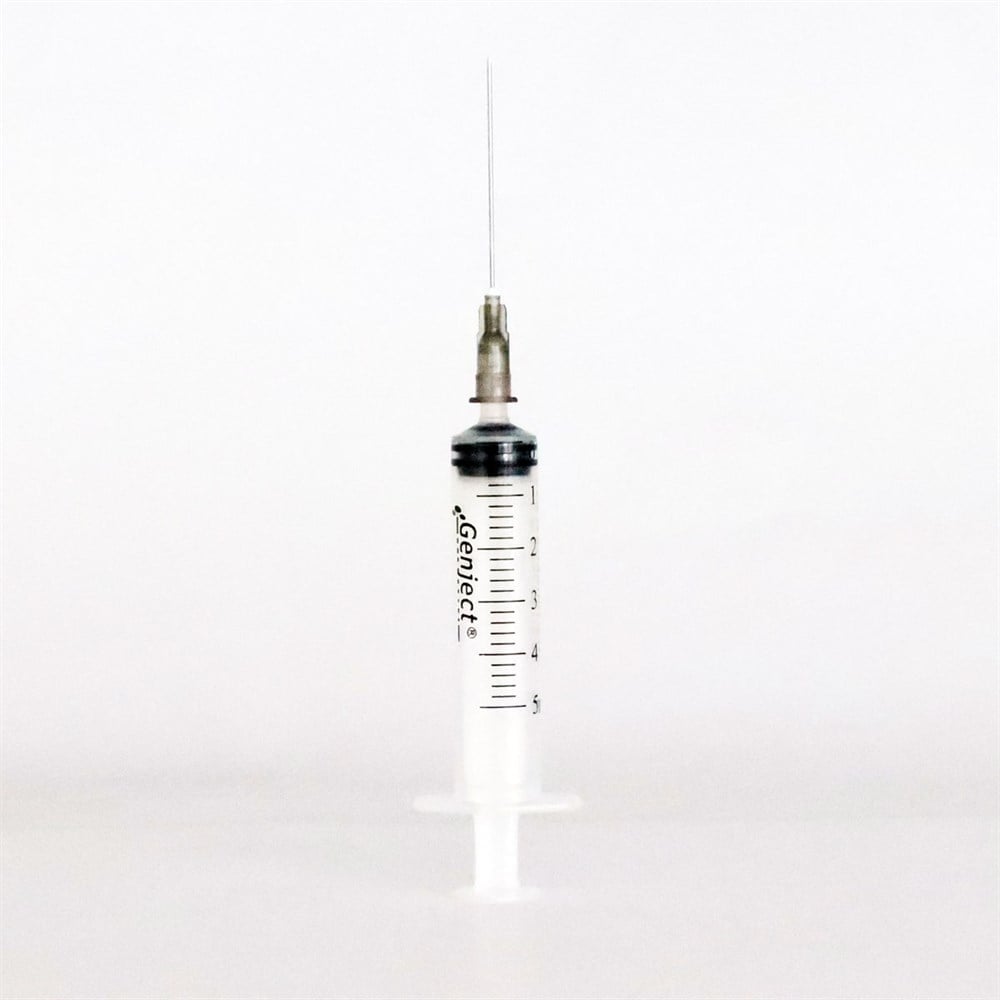 Genject Enjektör 5 cc 3 Parça Siyah - 250 Adet. Hastaneler, ASM'ler ve butik klinikler için özel hazırlanmış 250'li paket; rutin enjeksiyonlarda acıyı minimize eden 22G (siyah) ince iğne ucu, 5 cc evrensel kapasite ve sızdırmaz kauçuk contasıyla (3 parça) konforlu işlem sağlayan steril, birinci sınıf yerli üretim profesyonel medikal sarf malzemesi.