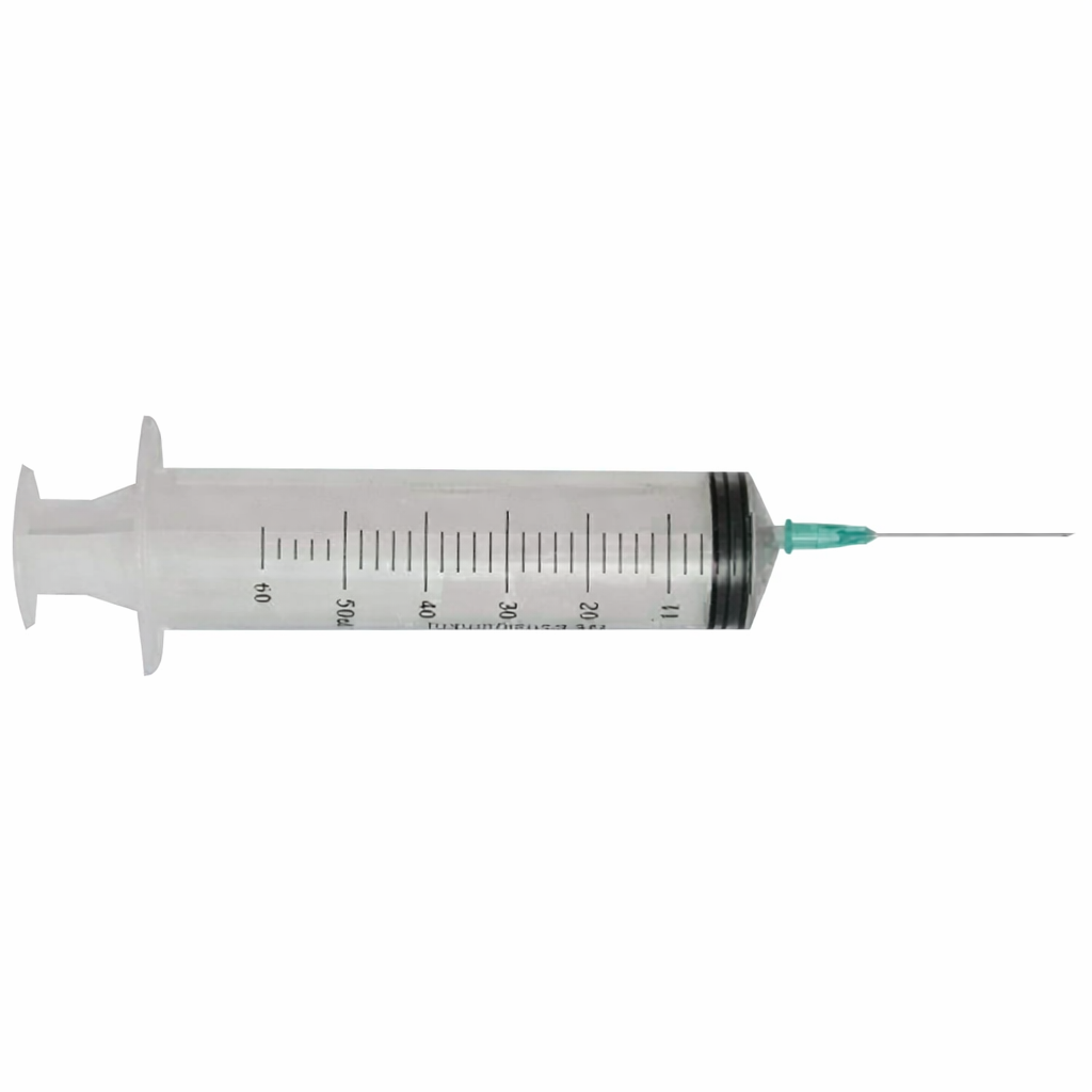 Genject Enjektör 50 cc 3 Parça Yeşil. Bireysel kullanımlar, evde bakım süreçleri ve geniş hacimli klinik uygulamalar için ideal 50 cc kapasite; 21G (yeşil) iğne ucu ve sızdırmaz kauçuk contasıyla (3 parça) güvenli ve pürüzsüz sıvı transferi sağlayan, steril, tek kullanımlık yerli üretim medikal sarf malzemesi.