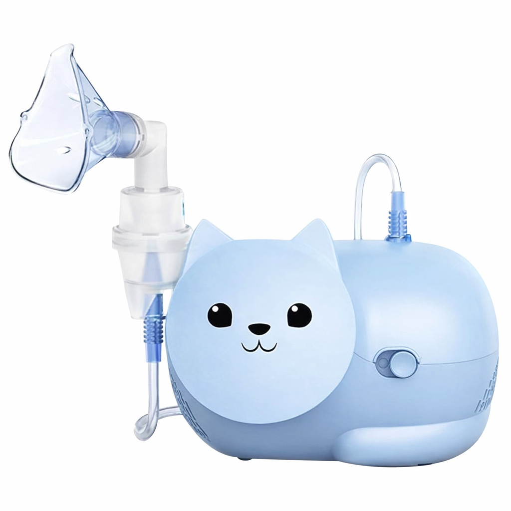 Omron Nami Cat Kompresörlü Nebulizatör. Çocukların tedavi sürecini kolaylaştırmak için tasarlanmış sevimli ve güçlü solunum cihazı; Omron'un klinik olarak kanıtlanmış buharlaştırma teknolojisi, çocuklara özel ergonomik maskesi ve dayanıklı motor yapısıyla evde profesyonel ve stresiz solunum terapisi sunan özel tasarım nebulizatör.