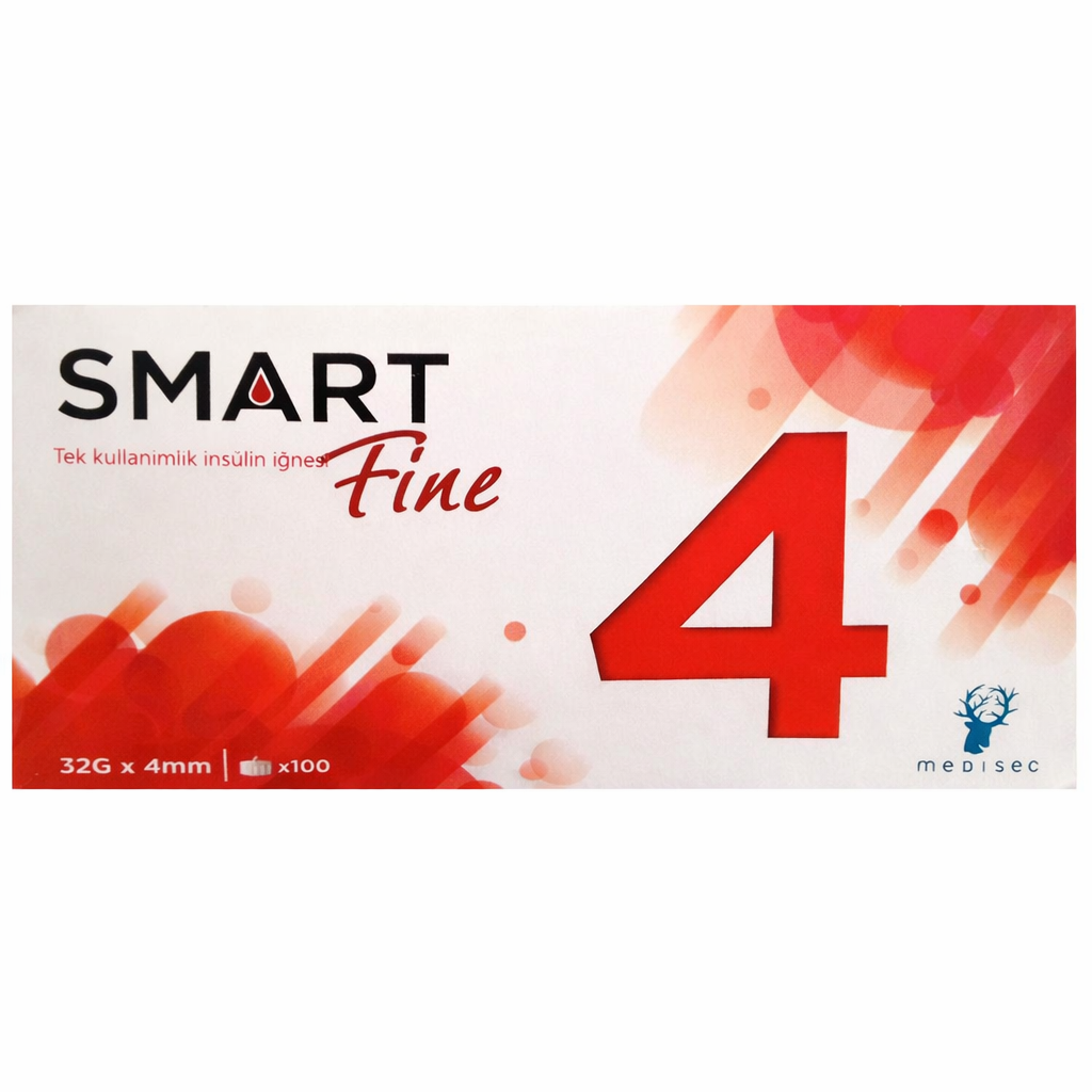 Smart Fine İnsülin İğne Ucu 4 mm. İnsülin kalemi kullanıcıları için tasarlanmış ekstra hassas mikro uç; acıyı minimize eden ince iğne yapısı ve kas enjeksiyonu riskini önleyen 4 mm güvenli derinliğiyle her türlü insülin kalemiyle sızdırmaz uyum sağlayan steril, tek kullanımlık profesyonel kalem iğnesi.