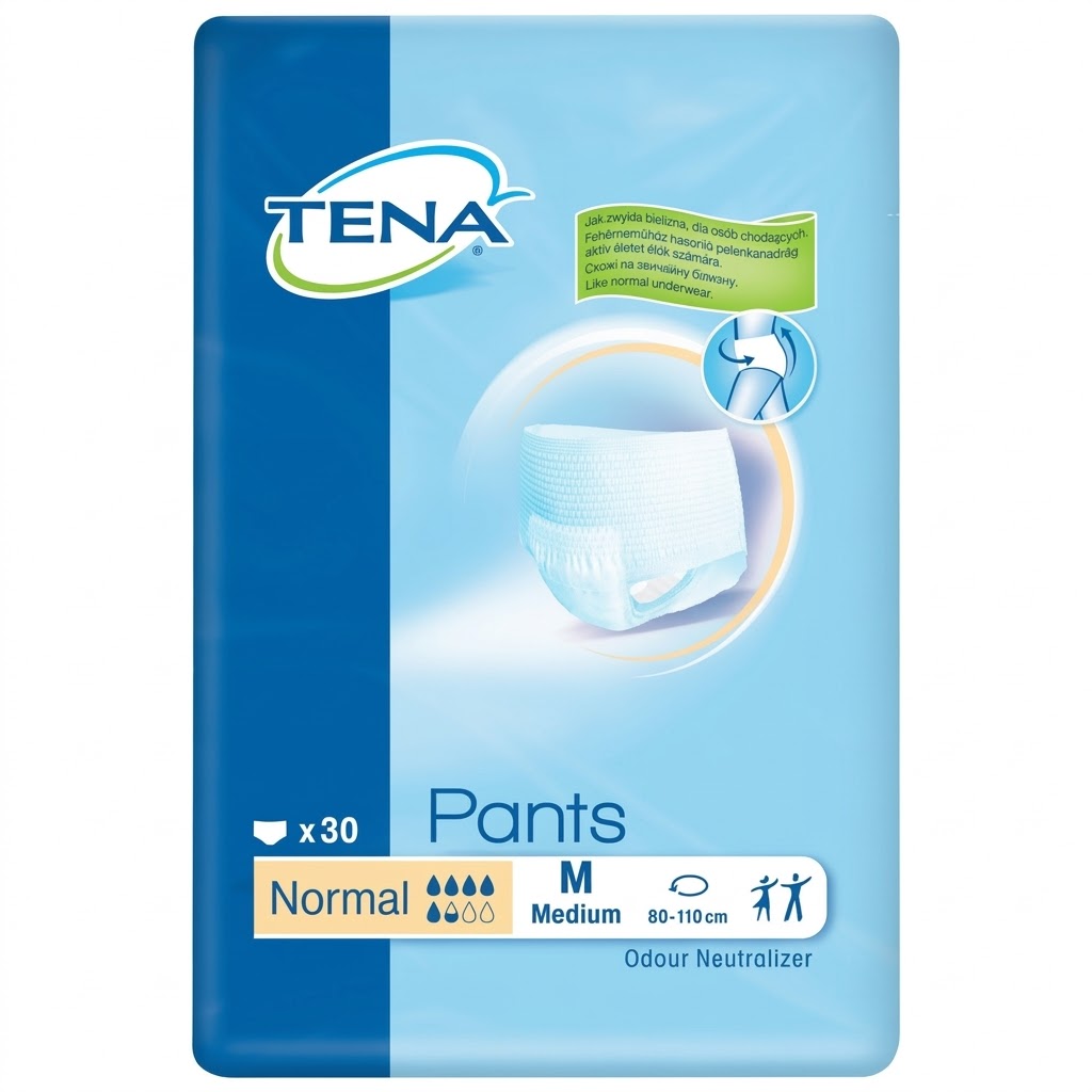 Tena ProSkin Pants Normal, idrar kaçırma problemi yaşayan Medium beden ölçüsündeki (80-110 cm bel çevresi) bireyler için geliştirilmiş, güvenliği ve cilt sağlığını bir arada sunan, iç çamaşırı formunda bir emici külottur.